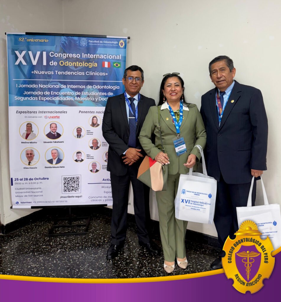 El Colegio Odontológico del Perú – Región Ayacucho reconoce y saluda la destacada participación de los doctores Víctor Manuel Chumpitaz Cerrate, Gilmer Torres Ramos, Daniel Suárez y Julio Ochoa Serpa, quienes representaron con compromiso y vocación a la comunidad odontológica, contribuyendo al fortalecimiento del conocimiento científico y al intercambio de experiencias profesionales.