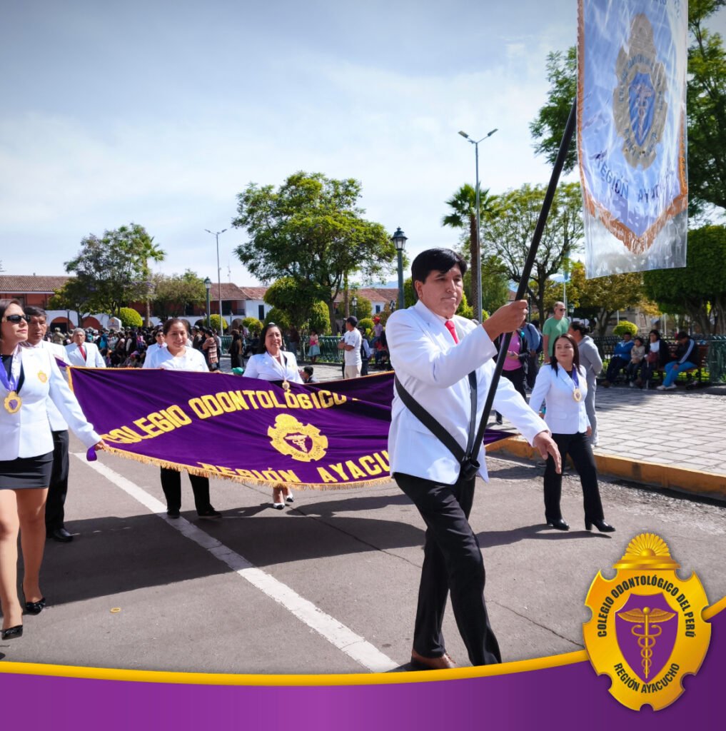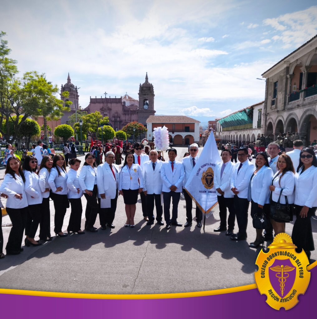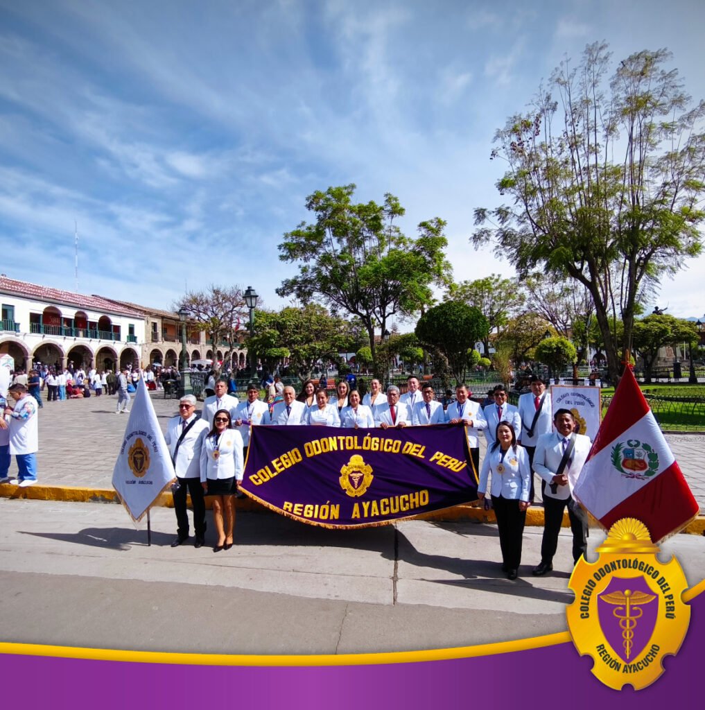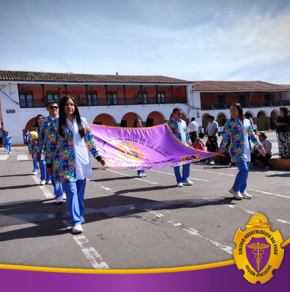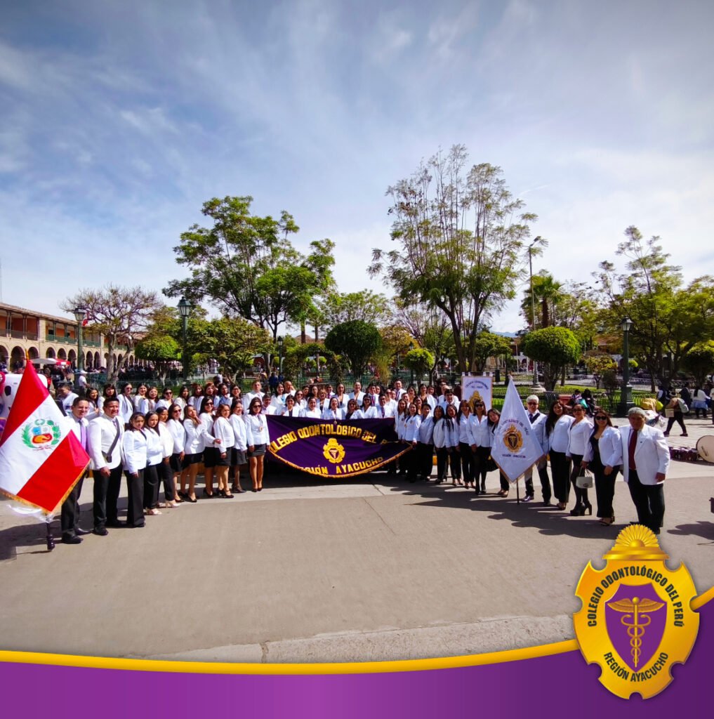 El Colegio Odontológico del Perú – Región Ayacucho participó el pasado 30 de noviembre en el Desfile Institucional realizado en la Plaza Mayor de Huamanga, como parte de las actividades previas a la conmemoración del Día de la Odontología Peruana. Este importante acto reunió a diversas instituciones públicas y profesionales, reafirmando el reconocimiento a la labor que desempeñan los cirujanos dentistas en beneficio de la salud integral de la población.