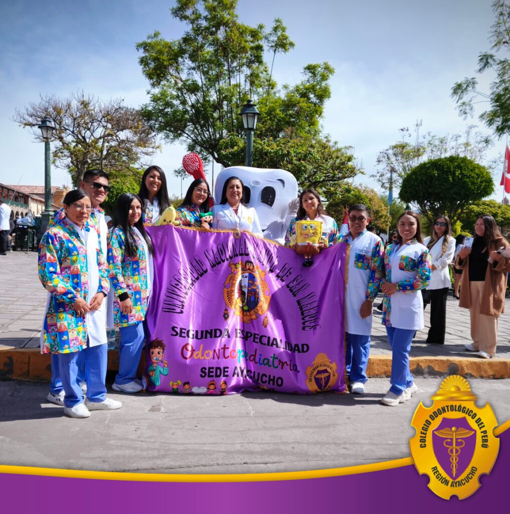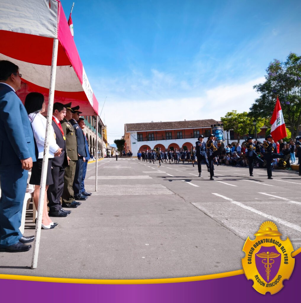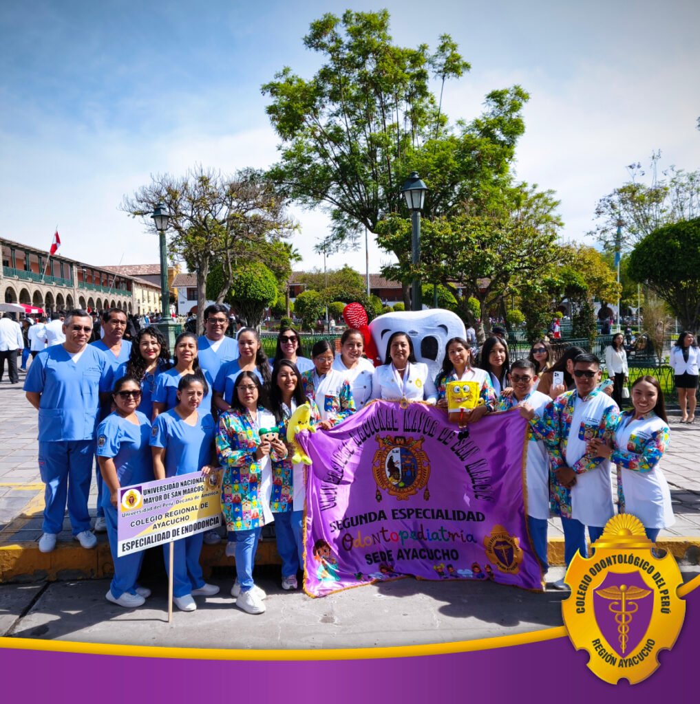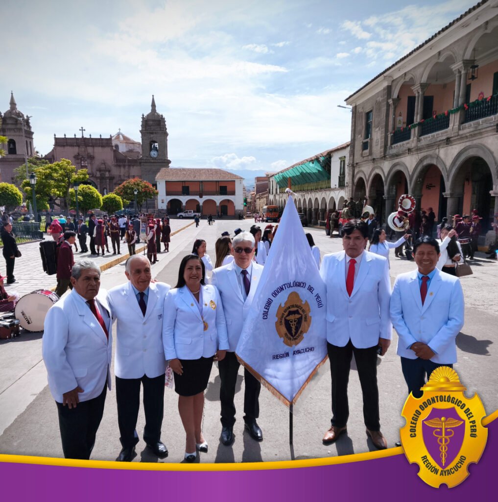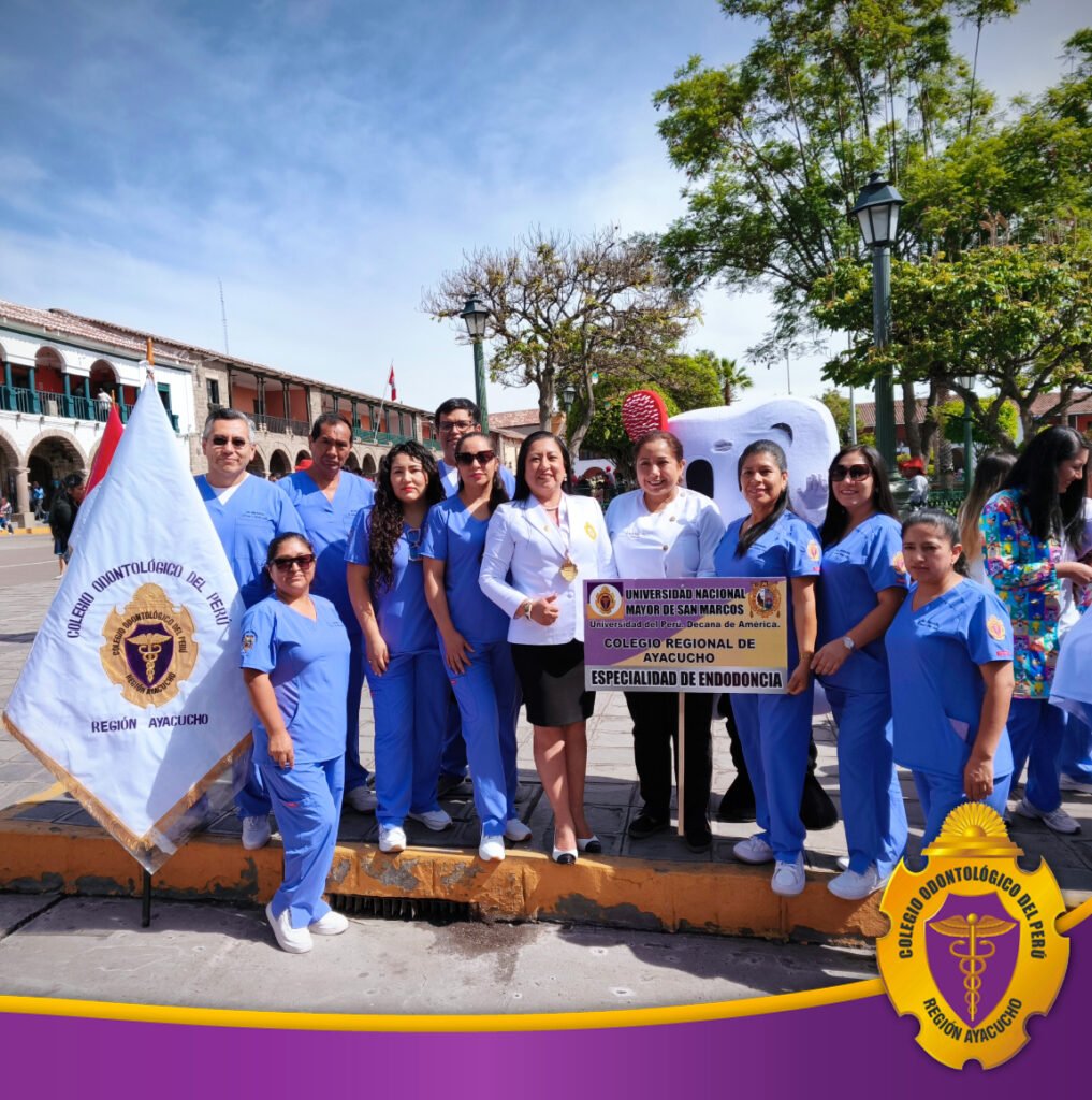 El Colegio Odontológico del Perú – Región Ayacucho participó el pasado 30 de noviembre en el Desfile Institucional realizado en la Plaza Mayor de Huamanga, como parte de las actividades previas a la conmemoración del Día de la Odontología Peruana. Este importante acto reunió a diversas instituciones públicas y profesionales, reafirmando el reconocimiento a la labor que desempeñan los cirujanos dentistas en beneficio de la salud integral de la población.