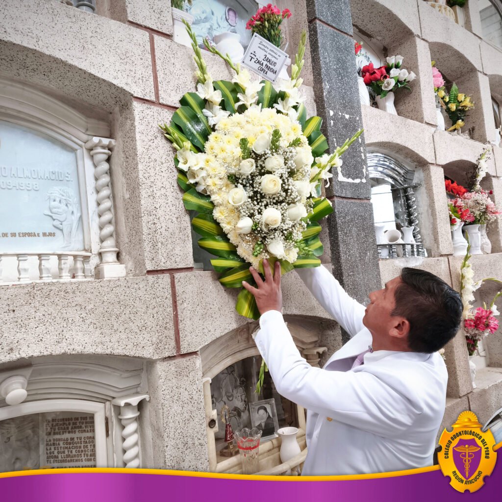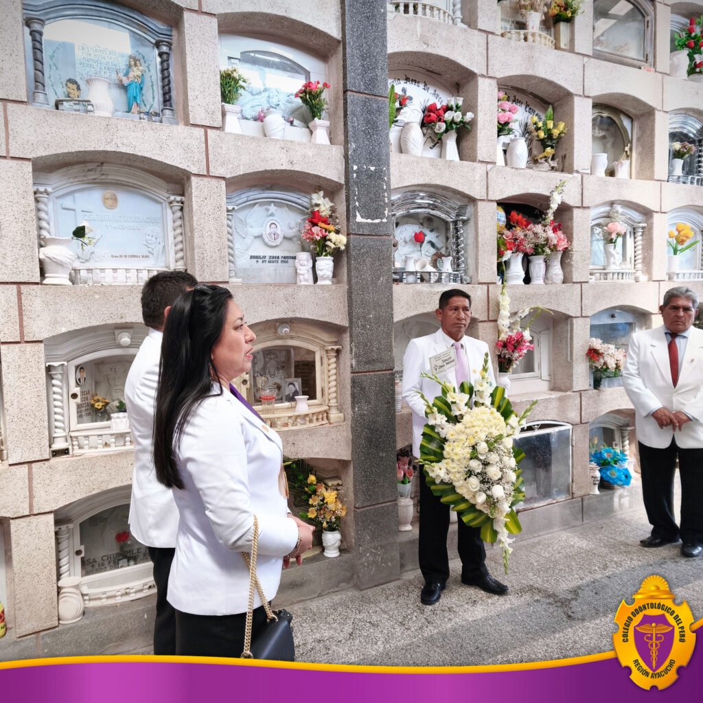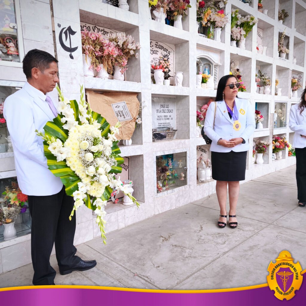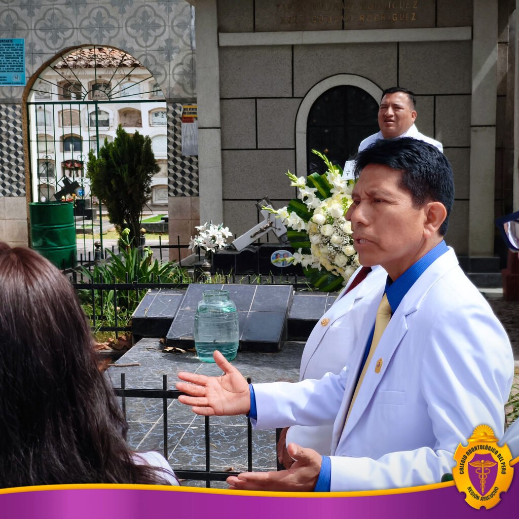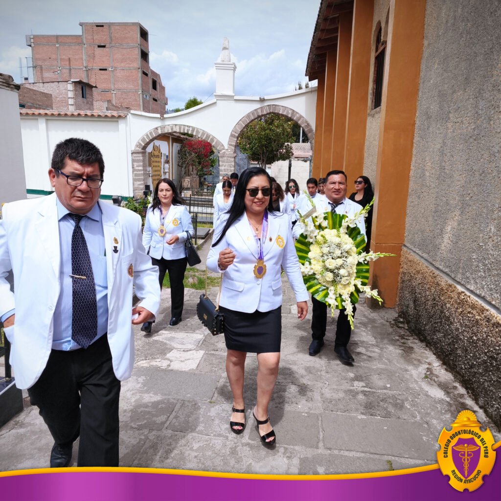Posteriormente, se llevó a cabo la tradicional romería, visita especial a los colegas fallecidos, con el propósito de honrar su memoria y reconocer el legado que dejaron en la profesión. Este momento, profundo y simbólico, permitió rendir homenaje a quienes dedicaron su vida al servicio de la salud bucal en nuestra región.