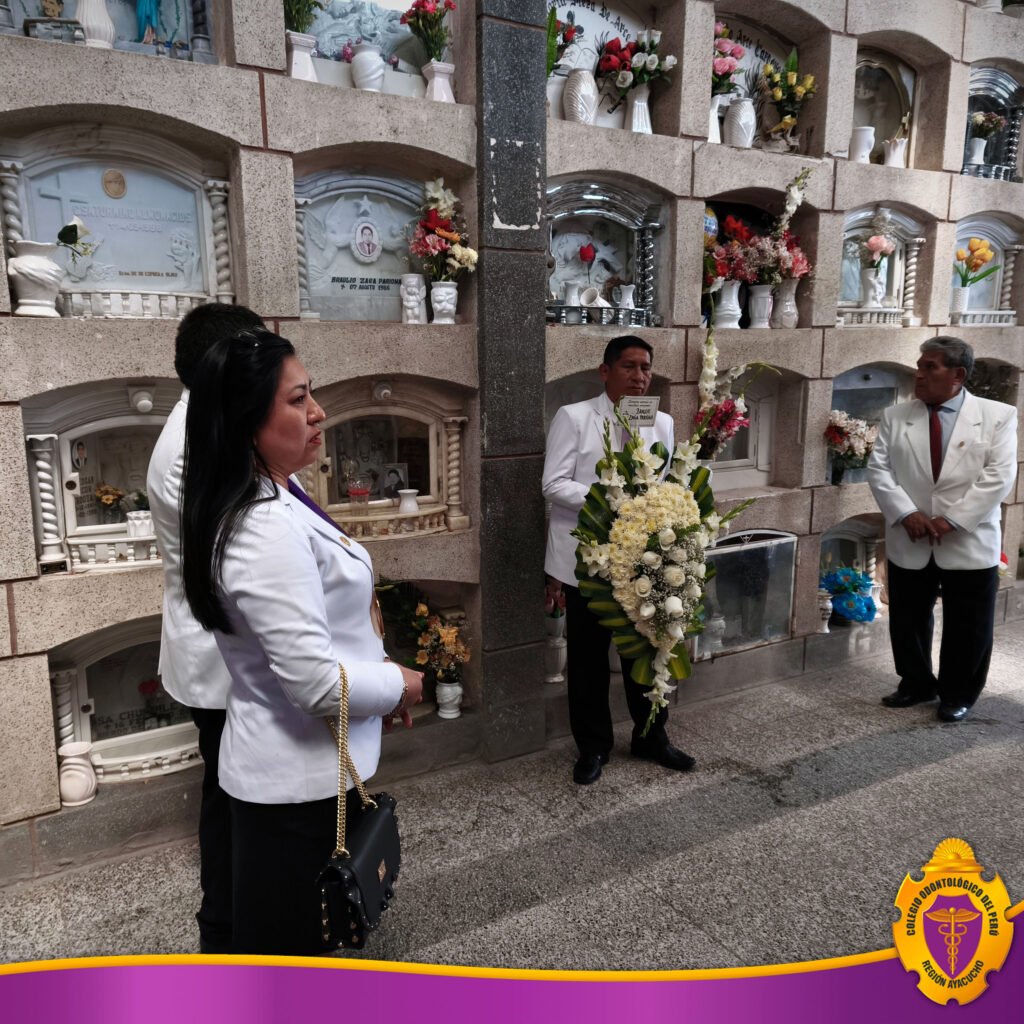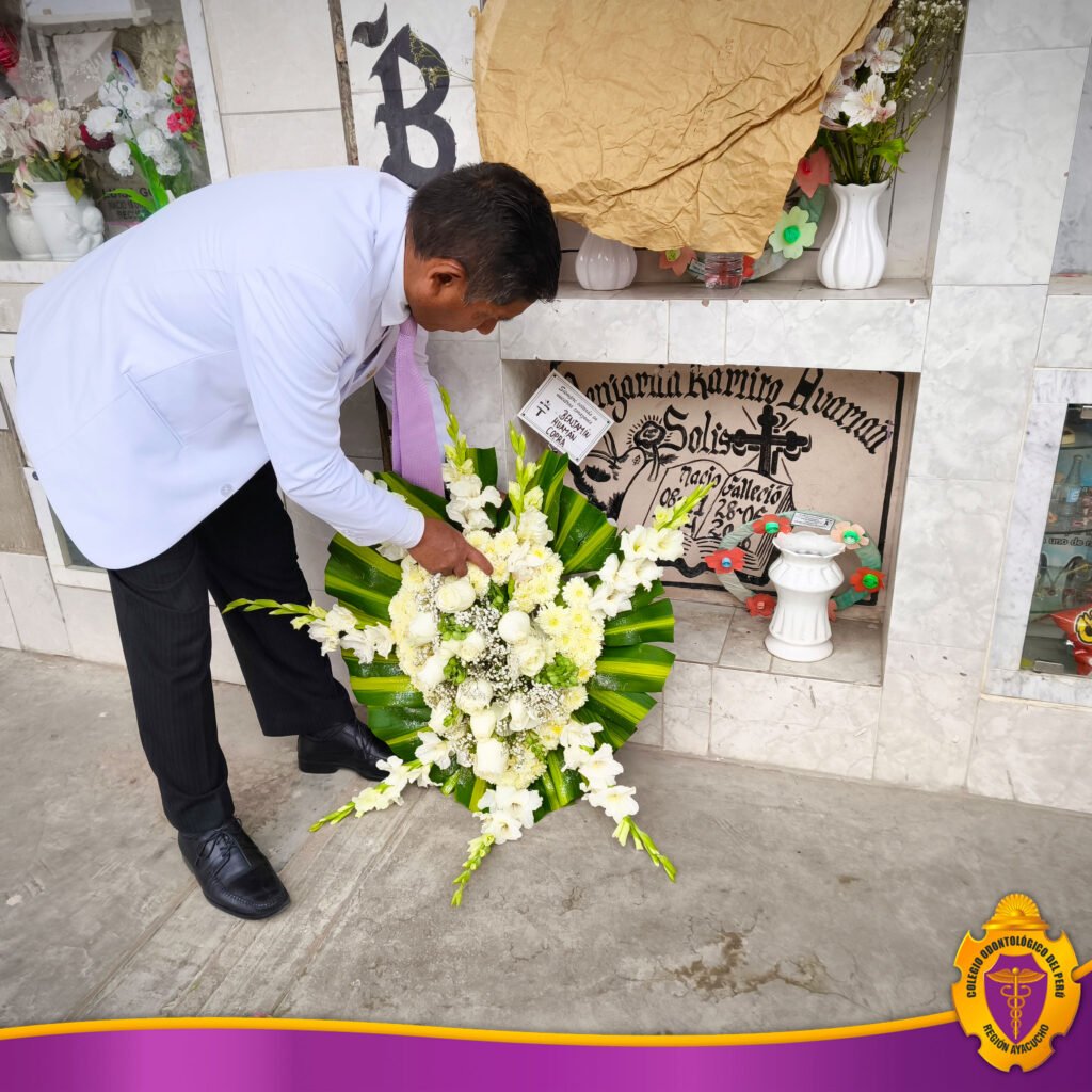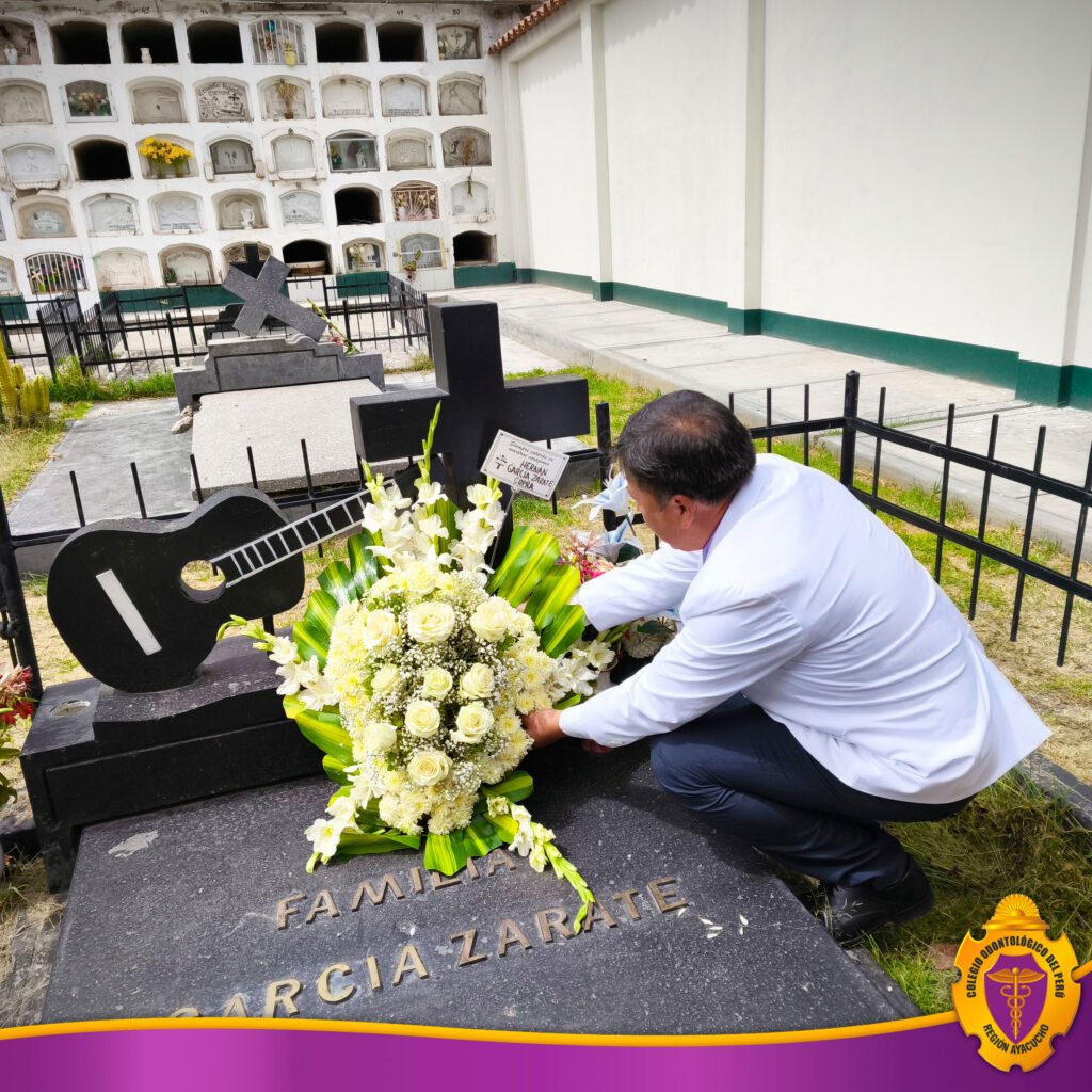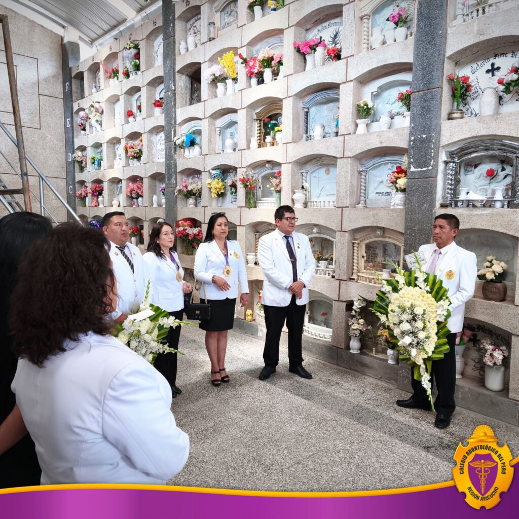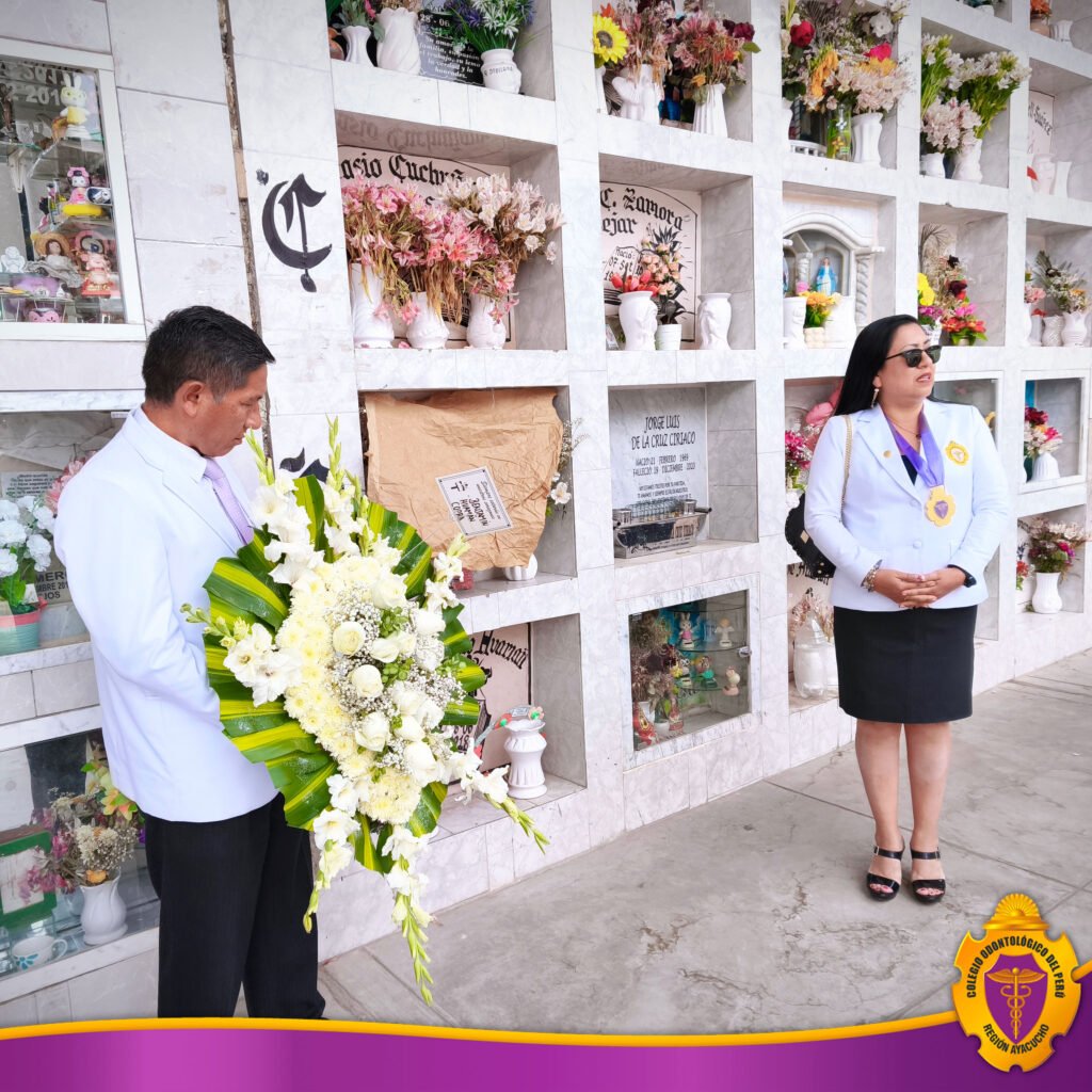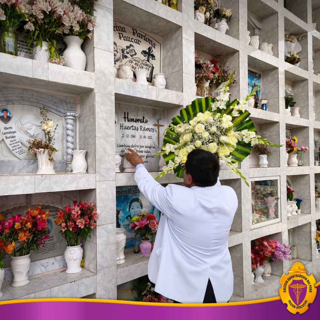 Posteriormente, se llevó a cabo la tradicional romería, visita especial a los colegas fallecidos, con el propósito de honrar su memoria y reconocer el legado que dejaron en la profesión. Este momento, profundo y simbólico, permitió rendir homenaje a quienes dedicaron su vida al servicio de la salud bucal en nuestra región.