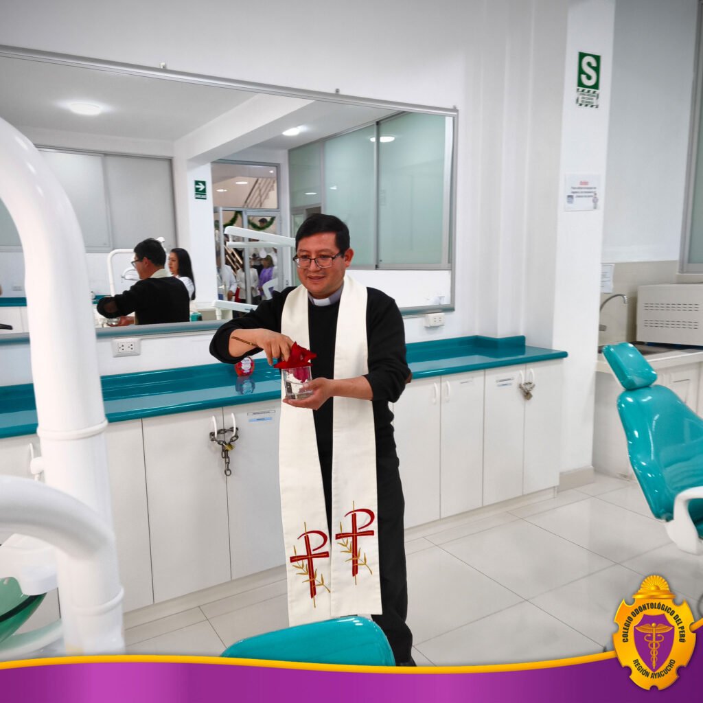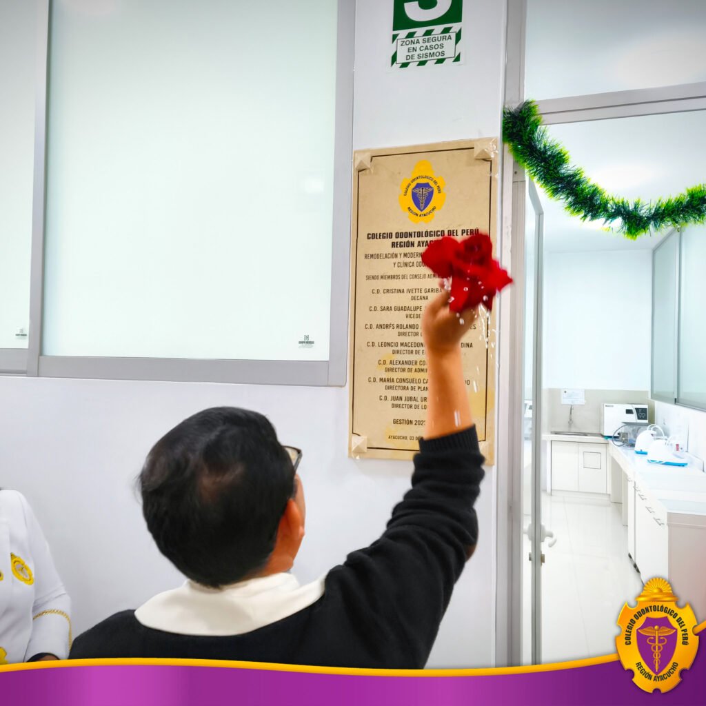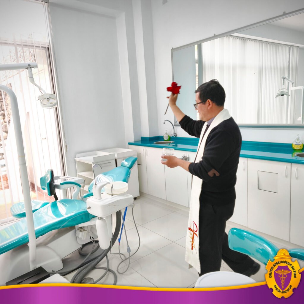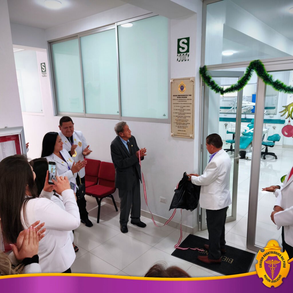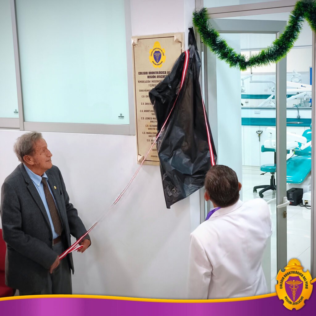 Acto seguido, se realizó la develación de la placa oficial del Colegio Odontológico del Perú – Región Ayacucho, ceremonia que contó con la presencia y bendición del padre invitado. El sacerdote también bendijo las instalaciones institucionales, pidiendo por la continuidad del trabajo responsable y comprometido en beneficio de todos los colegiados.