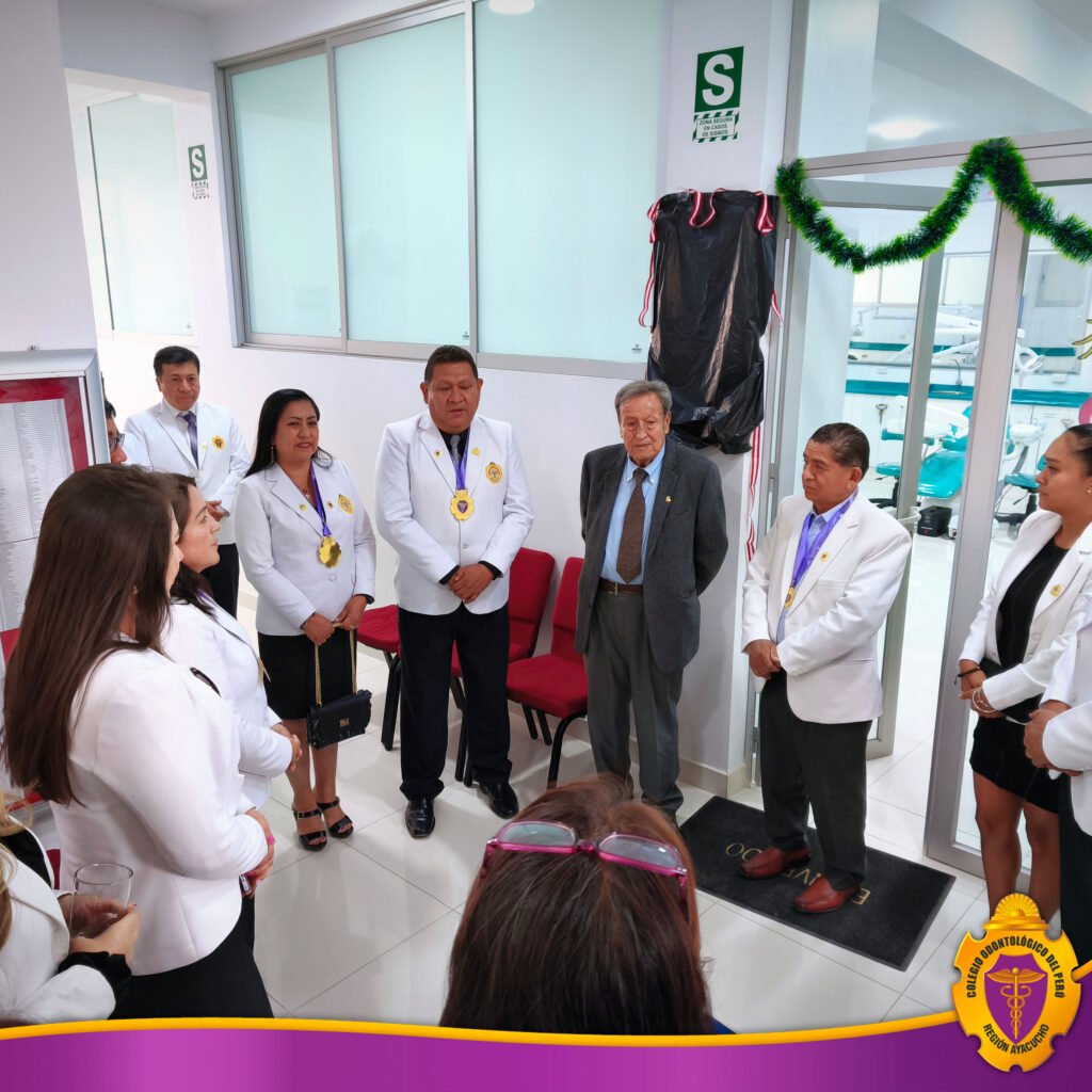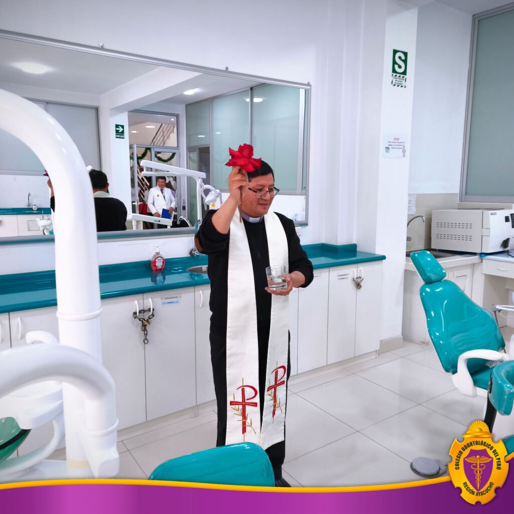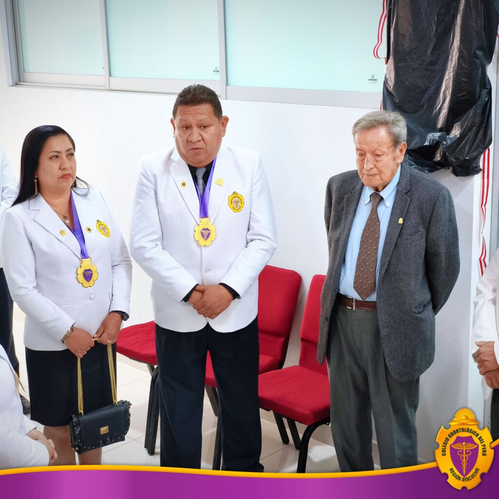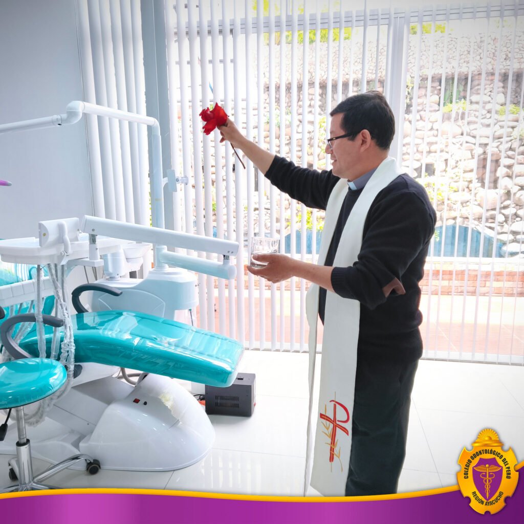 Acto seguido, se realizó la develación de la placa oficial del Colegio Odontológico del Perú – Región Ayacucho, ceremonia que contó con la presencia y bendición del padre invitado. El sacerdote también bendijo las instalaciones institucionales, pidiendo por la continuidad del trabajo responsable y comprometido en beneficio de todos los colegiados.
