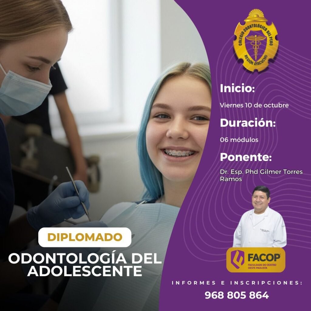 El Colegio Odontológico del Perú – Región Ayacucho, en el marco de su compromiso permanente con la excelencia y la actualización profesional, se complace en presentar el Diplomado en Odontología del Adolescente. Este programa académico de alto nivel ha sido diseñado meticulosamente para capacitar a los profesionales de la salud bucal en la atención odontológica especializada requerida durante la adolescencia, una etapa crucial del desarrollo humano que demanda un enfoque clínico y psicoemocional particular.