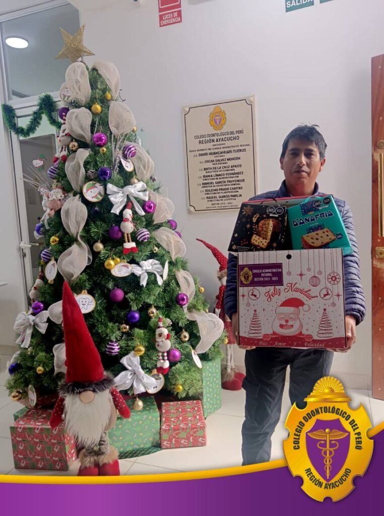 El Colegio Odontológico del Perú – Región Ayacucho viene realizando la entrega de canastas navideñas a sus cirujanos dentistas colegiados, como una muestra de reconocimiento institucional y cercanía con sus miembros. Esta actividad refleja el compromiso permanente de la actual gestión con el bienestar, la integración y el fortalecimiento del vínculo gremial.