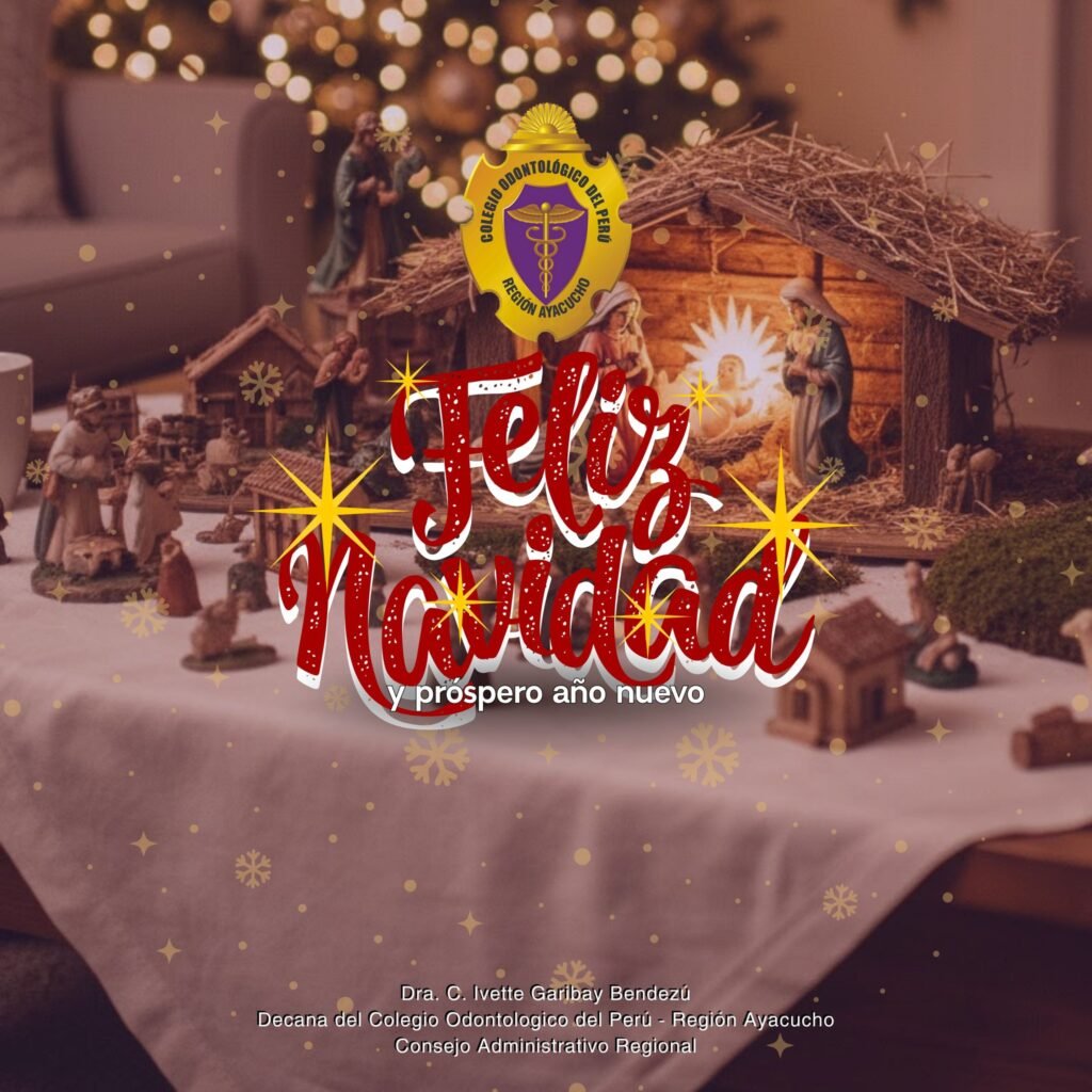 Con ocasión de las fiestas navideñas, el Colegio Odontológico del Perú – Región Ayacucho expresa su saludo institucional a todos los cirujanos dentistas colegiados y a sus familias, formulando los mejores deseos de paz, armonía y bienestar en estas fechas de especial significado.