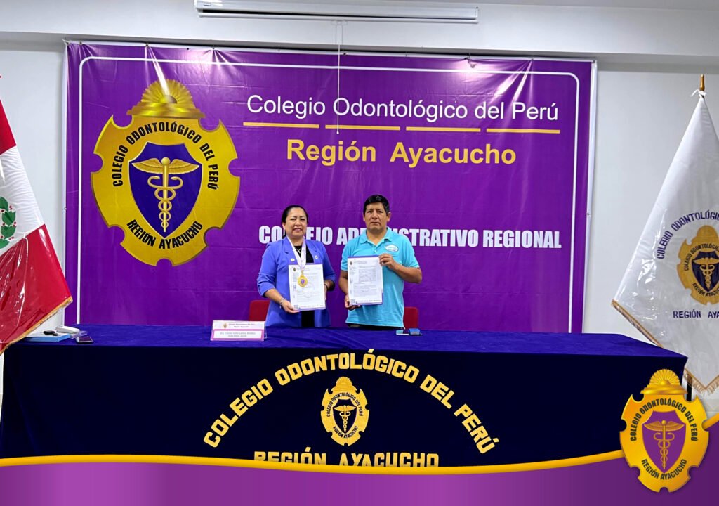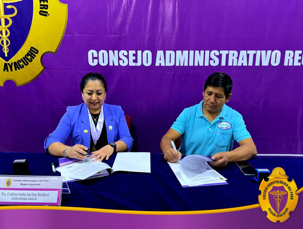 El Colegio Odontológico del Perú – Región Ayacucho, bajo el liderazgo de la Dra. Cristina Ivette Garibay Bendezú, Decana Regional, continúa fortaleciendo alianzas estratégicas con instituciones del sector privado, en beneficio directo de sus agremiados y de la comunidad odontológica ayacuchana.