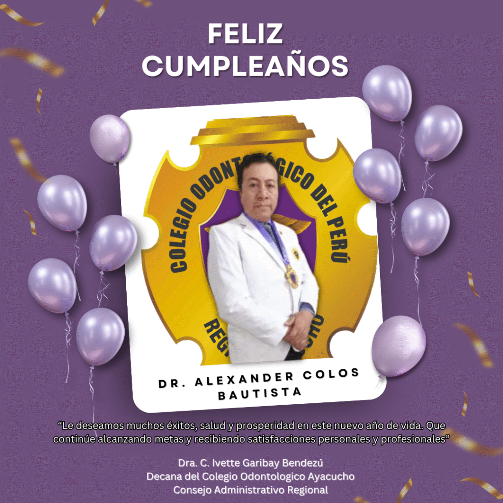 El Colegio Odontológico del Perú – Región Ayacucho expresa su saludo institucional al Dr. Alexander Colos Bautista, Director de Administración, con motivo de su cumpleaños.
