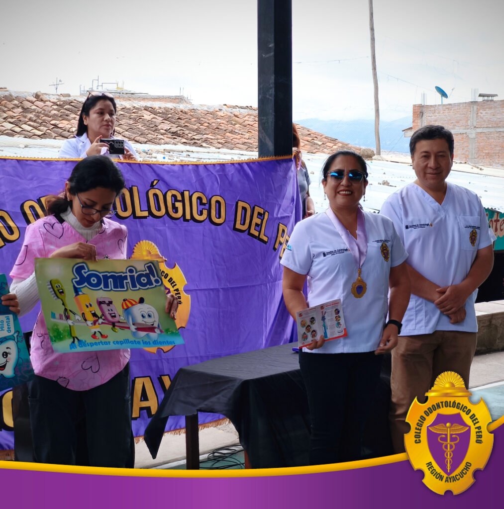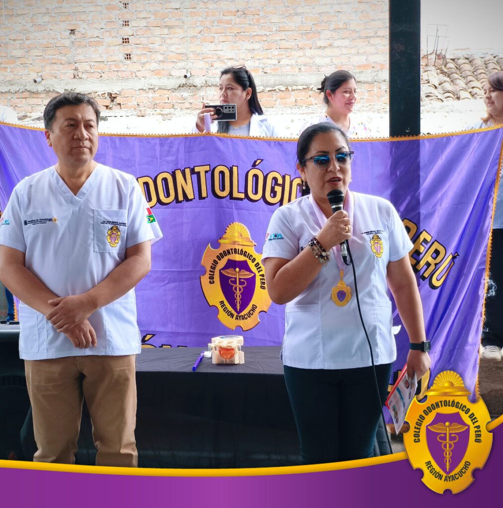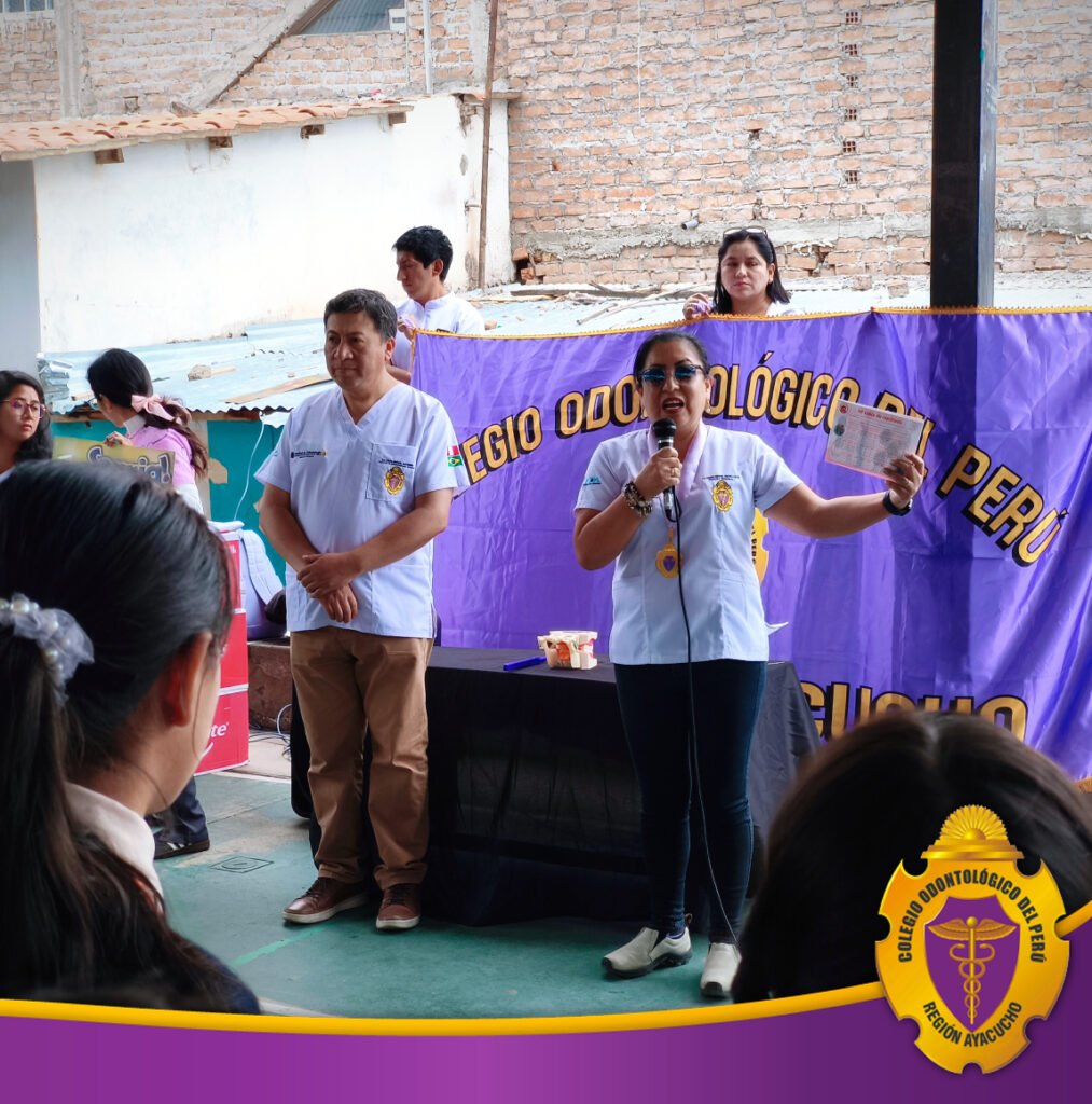 Esta actividad contó con la presencia de la decana del Colegio Odontológico del Perú – Región Ayacucho, doctora Cristina Ivette Garibay Bendezú, y del director de Administración, doctor Alex C. B., quienes acompañaron el desarrollo de la jornada reafirmando el compromiso institucional con la comunidad y con las acciones que contribuyen al bienestar social.